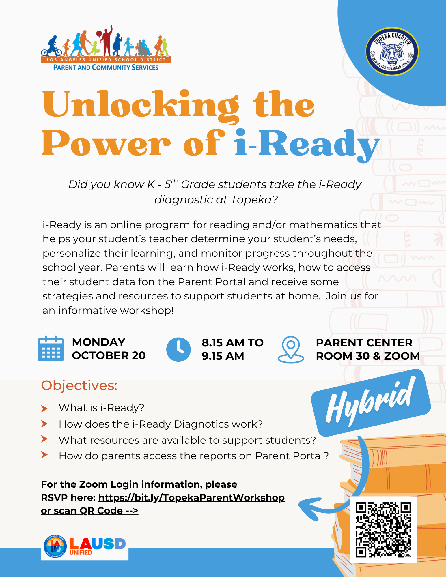 WHERE: Parent Center (Room 30) and on Zoom (For the Zoom Login information please RSVP at www.bit.ly/TopekaParentWorkshop)
