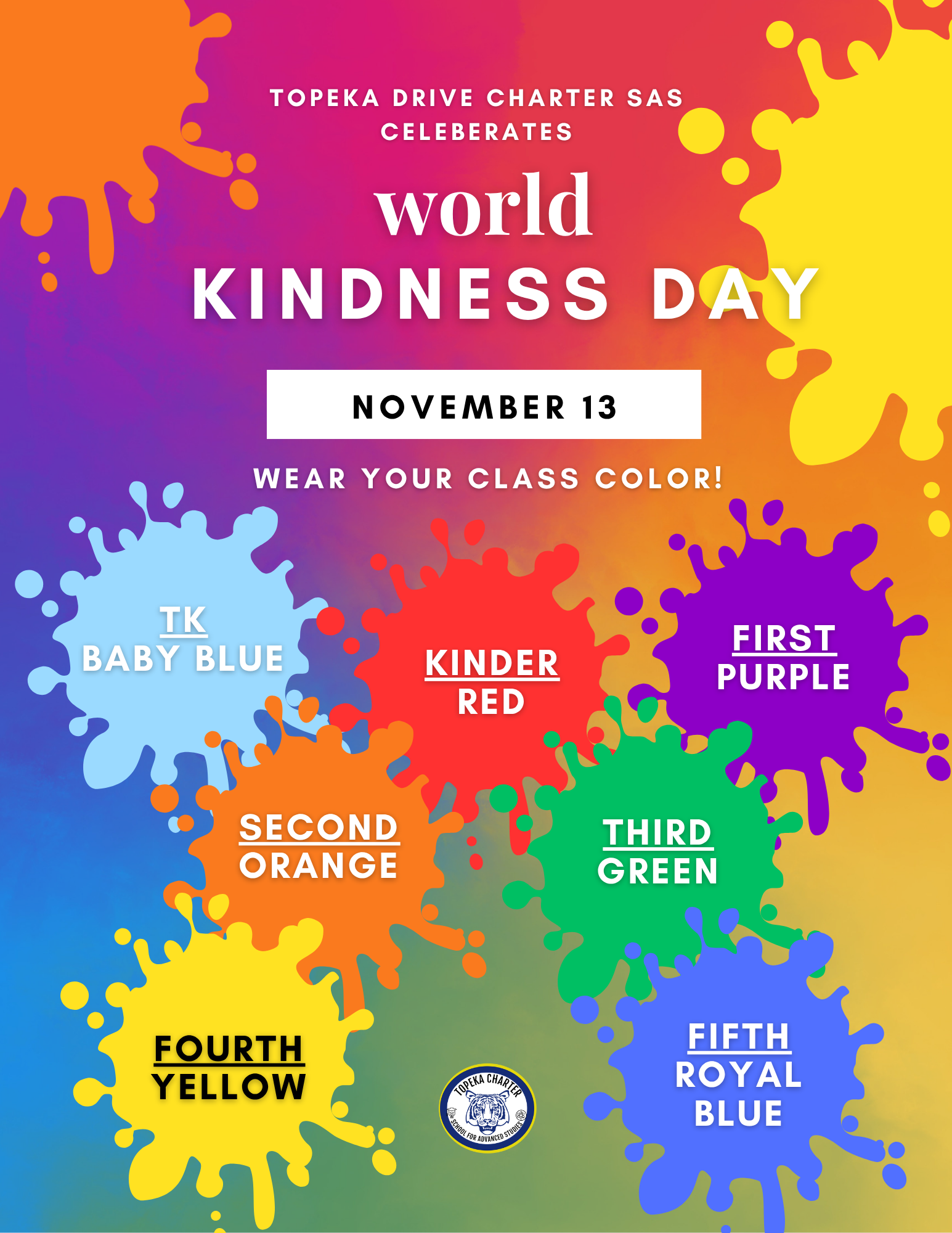 Help us celebrate World Kindness Day by wearing your Grade Color: