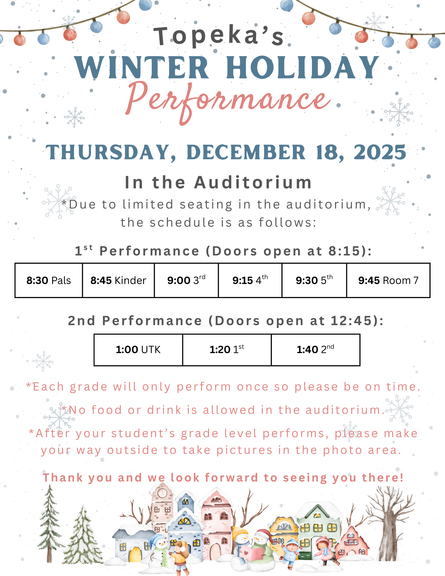 After your student's grade level performs, please make your way outside to take pictures in the photo area.